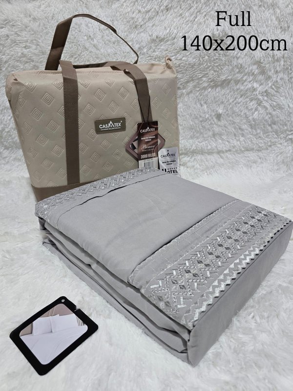 Transforma tu cama en un santuario de descanso con el Juego de Sábanas de 3000 HILOS de CASATEX Premier Quality. Diseñado con la calidad que esperas de los mejores hoteles, ahora en tu propio hogar.✨ Detalles que Enamoran:3000 Hilos: Un nivel superior de suavidad y confort que te invita a un sueño profundo y reparador.Diseño Exquisito: El blanco inmaculado se complementa con un bordado elegante y sofisticado en los dobladillos, añadiendo un toque de distinción.Presentación Premium: Viene empacado en una bolsa de transporte reutilizable con asas, ideal para guardar o para un regalo espectacular.💖 Calidad Superior Garantizada:CASATEX: Sinónimo de calidad, durabilidad y lujo en textiles para el hogar.Suavidad Hotelera: Siente el placer de despertar renovado, como si hubieras pasado la noche en un hotel de cinco estrellas.📏 Medida de la Presentación (TWIN):TWIN: 105 x 200 cm(Consulta por otras medidas disponibles en esta calidad Premier).🎁 ¡Regálate o regala el lujo de un descanso Premier con CASATEX! 🎁✨ ¡Tenemos Más Opciones de Lujo! ✨Además de nuestra línea Premier de 3000 HILOS, contamos con más diseños, colores y conteos de hilos (incluyendo la línea de 4500 hilos) de CASATEX y otras marcas. ¡Te invitamos a explorar nuestra colección completa para encontrar el set perfecto!